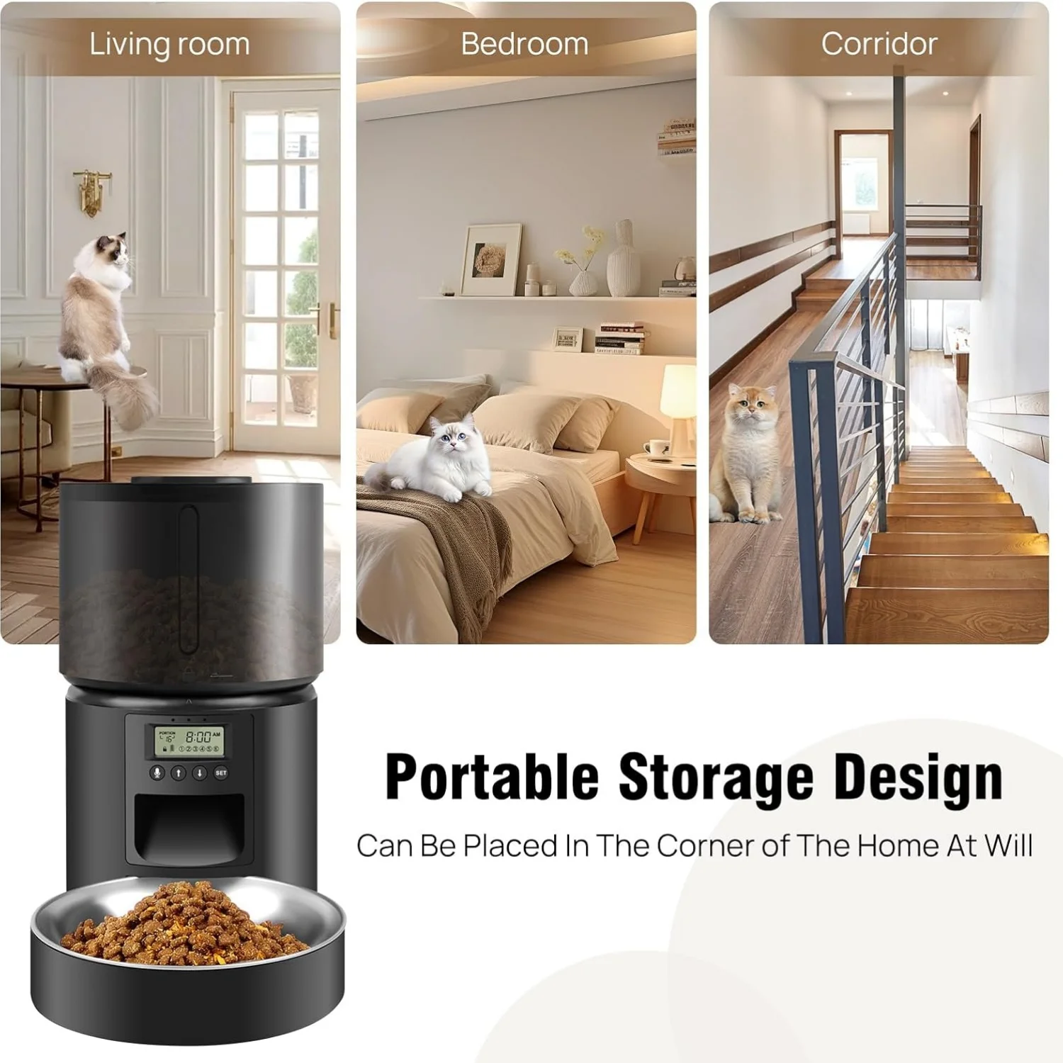【Flexible Scheduled Feeding & Precise Portion Control】This cat feeder can be set for 1-6 meals per day, allowing pet owners to customise their pet's feeding schedule to suit their needs. The automatic feeder accurately controls the amount of food dispensed at each meal, helping pets maintain healthy eating habits and preventing overeating or picky eating. Each meal supports the dispensing of 1 to 9 servings, each serving approximately 11g.